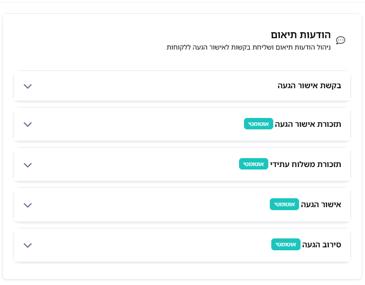 אישור הגעה = נשלח אוטומטית ללקוח במידה ואישר את מועד ההגעה בקישור